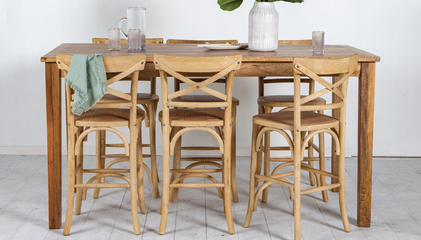 We stock an extensive range of dining tables, bar tables, chairs and stools to suit any interior style. Made from the highest quality materials, our dining furniture is timeless, durable and on trend. With a commitment to sustainability, you can be sure that our furniture is also an investment in our environment.
